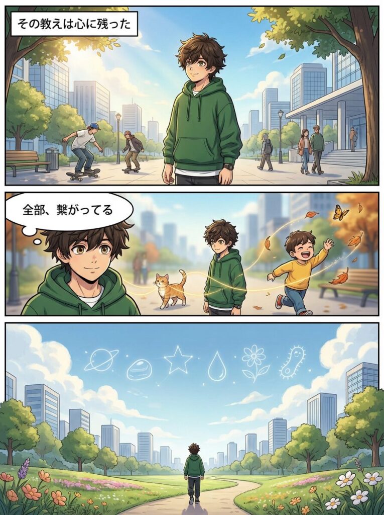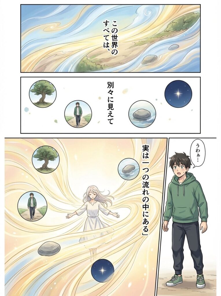 「この世界のすべては、別々に見えて実は一つの流れの中にある」