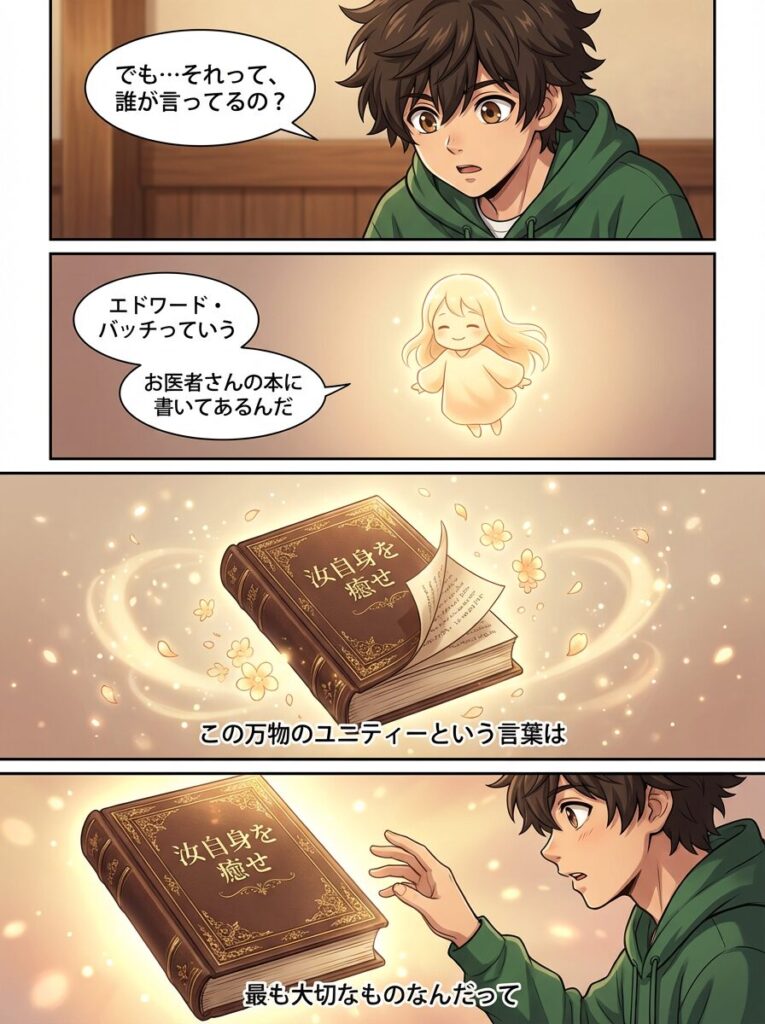 この万物のユニティーという言葉は、エドワード・バッチ博士の著書に頻繁に使われる言葉で最重要とされているものとなります。
